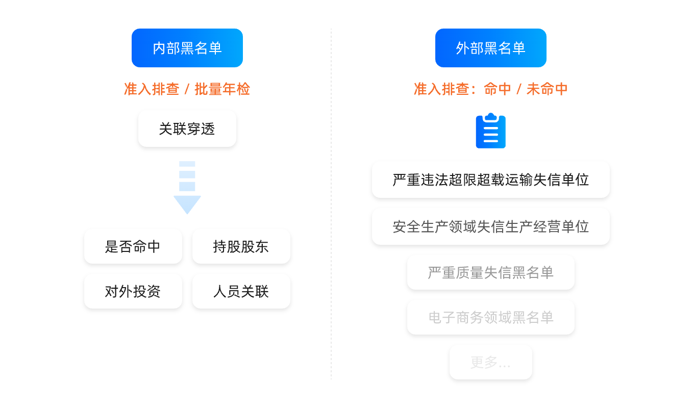 及时识别内外部黑名单企业,自动追溯关联方,严防“改头换面”风险。