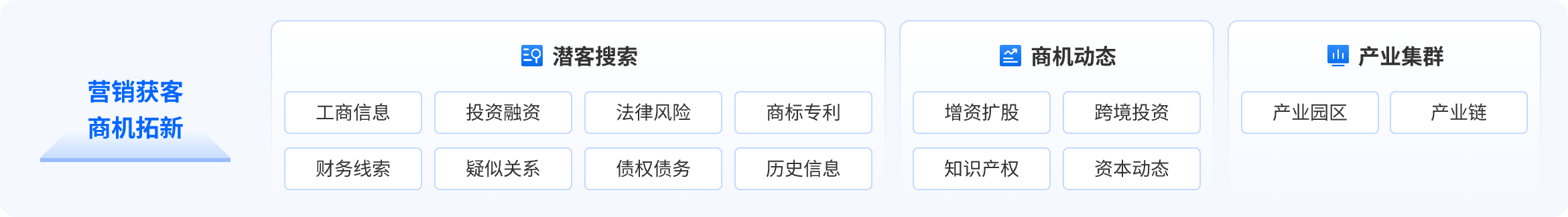 为金融机构提供覆盖“营销拓客-关系排查-授信决策-资管风控”四大场景的解决方案